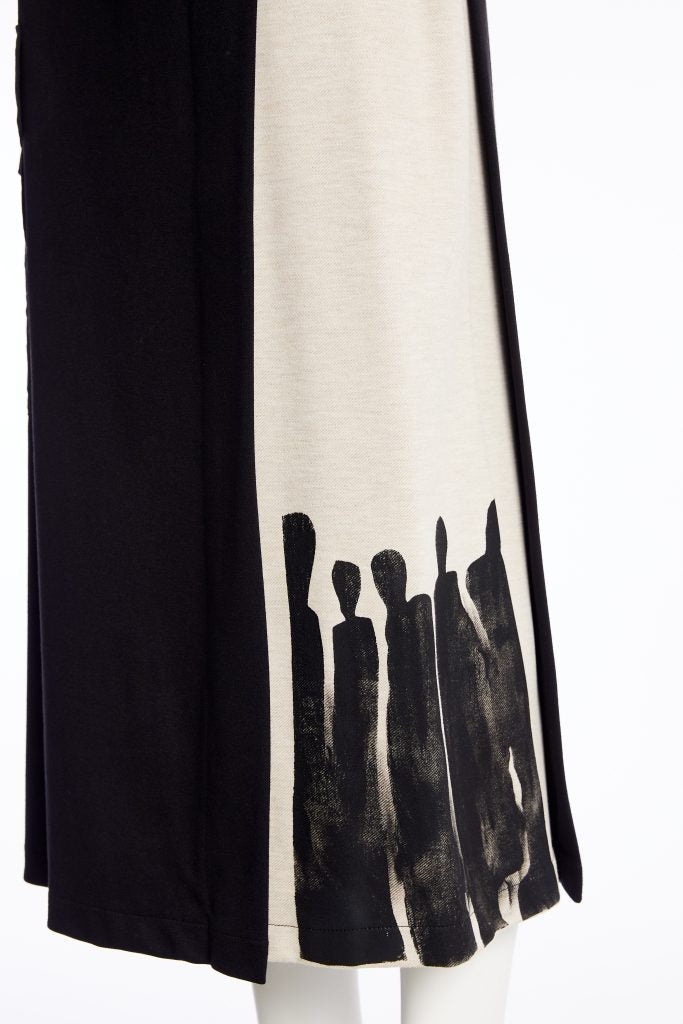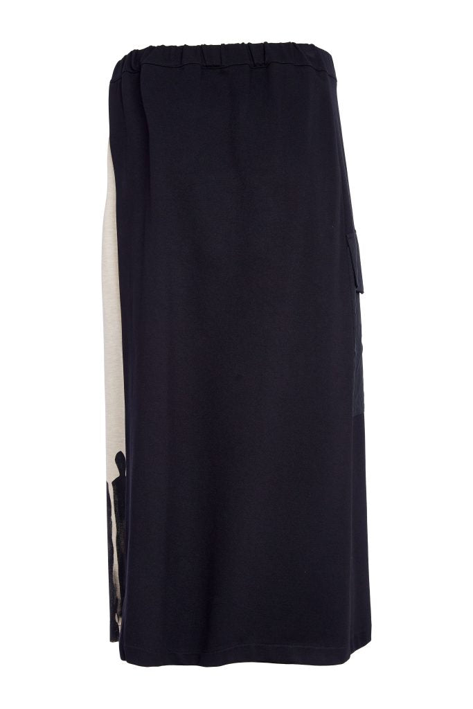 This skirt features a placement print design and a mock wrap style, available in the colour combination of black and sand.