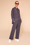 - Contrast pleated hemline with drawstring.