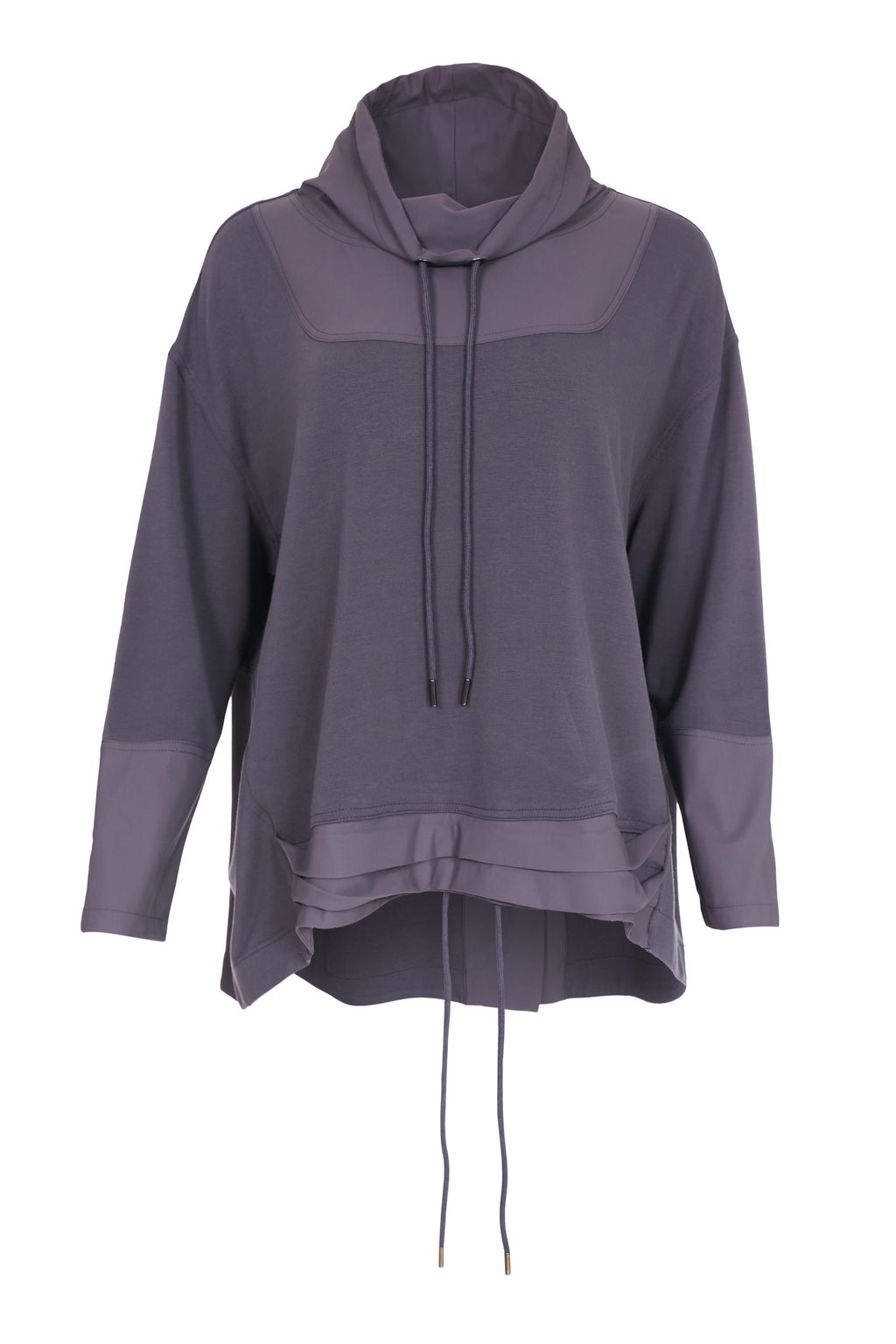 - Cowl neckline with drawstrings.