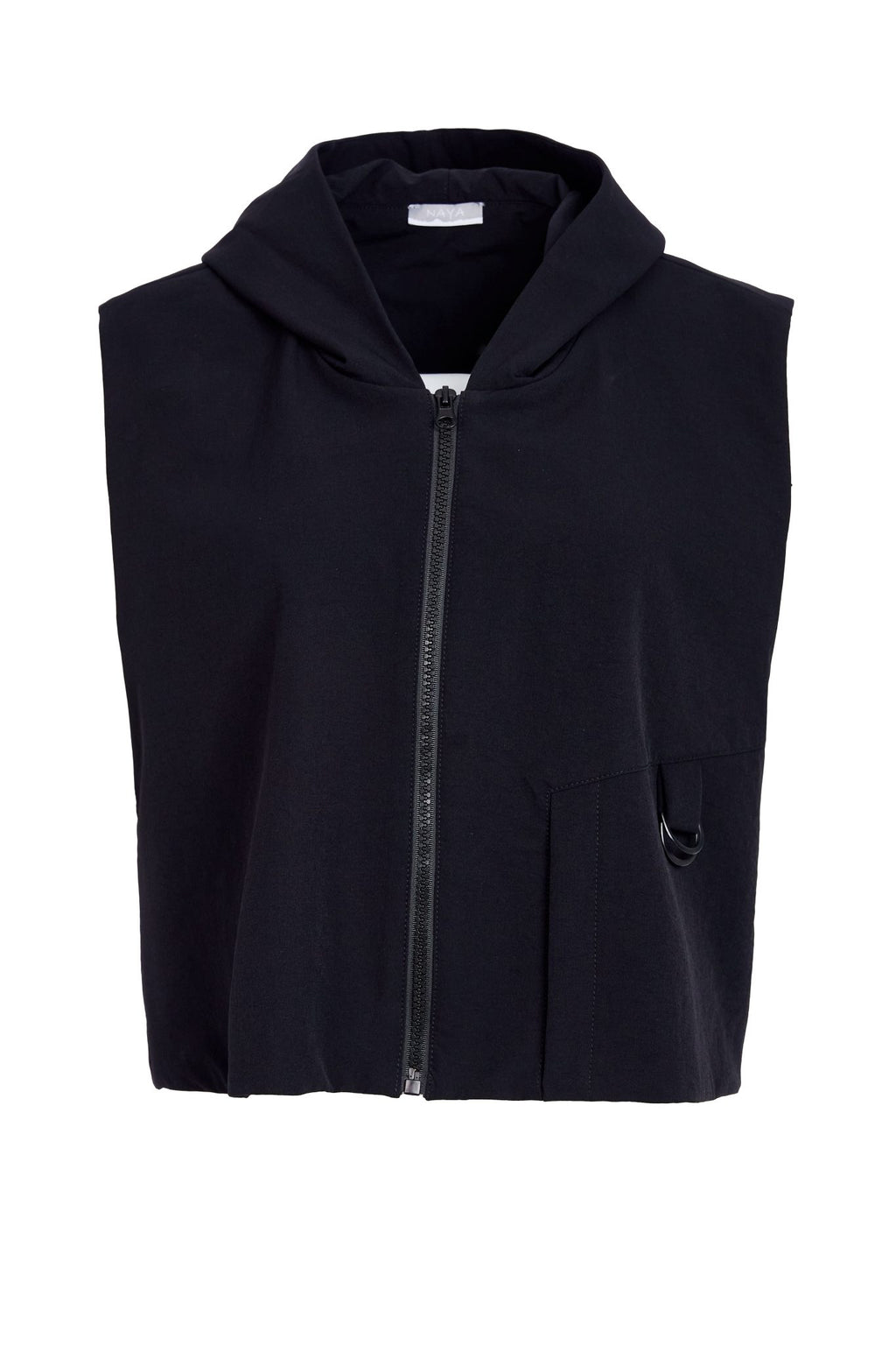 Ring Trim Hooded Waistcoat - Black