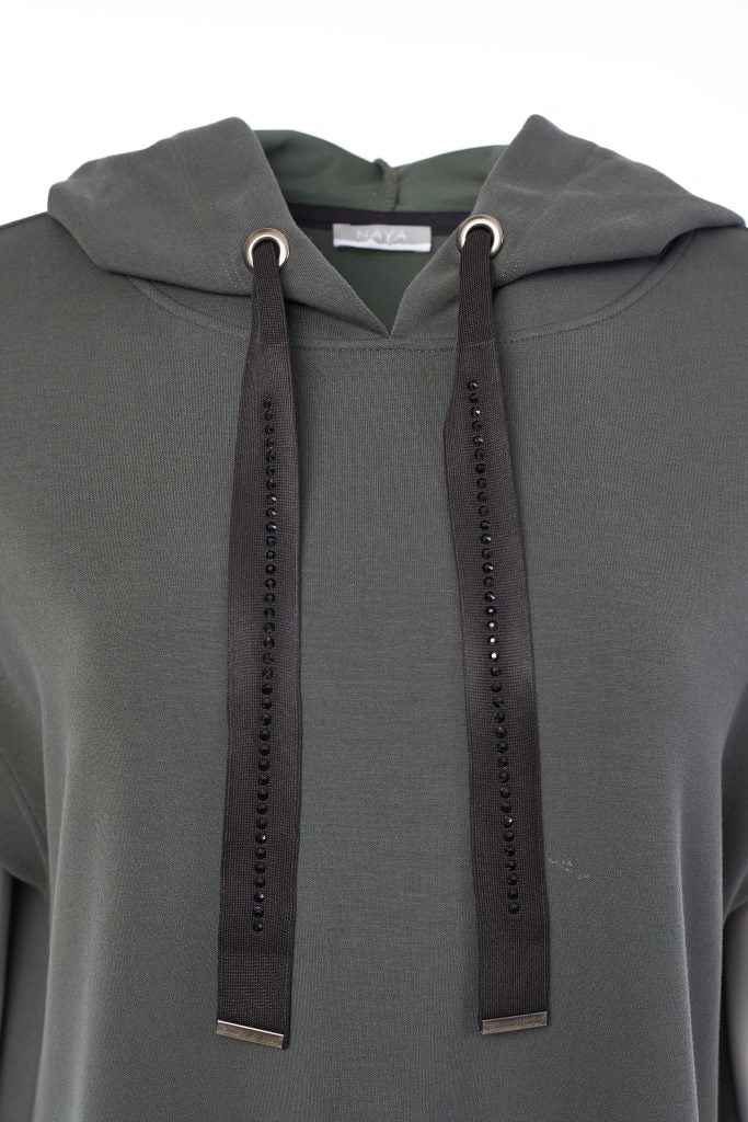 - Embellished drawstring hood.