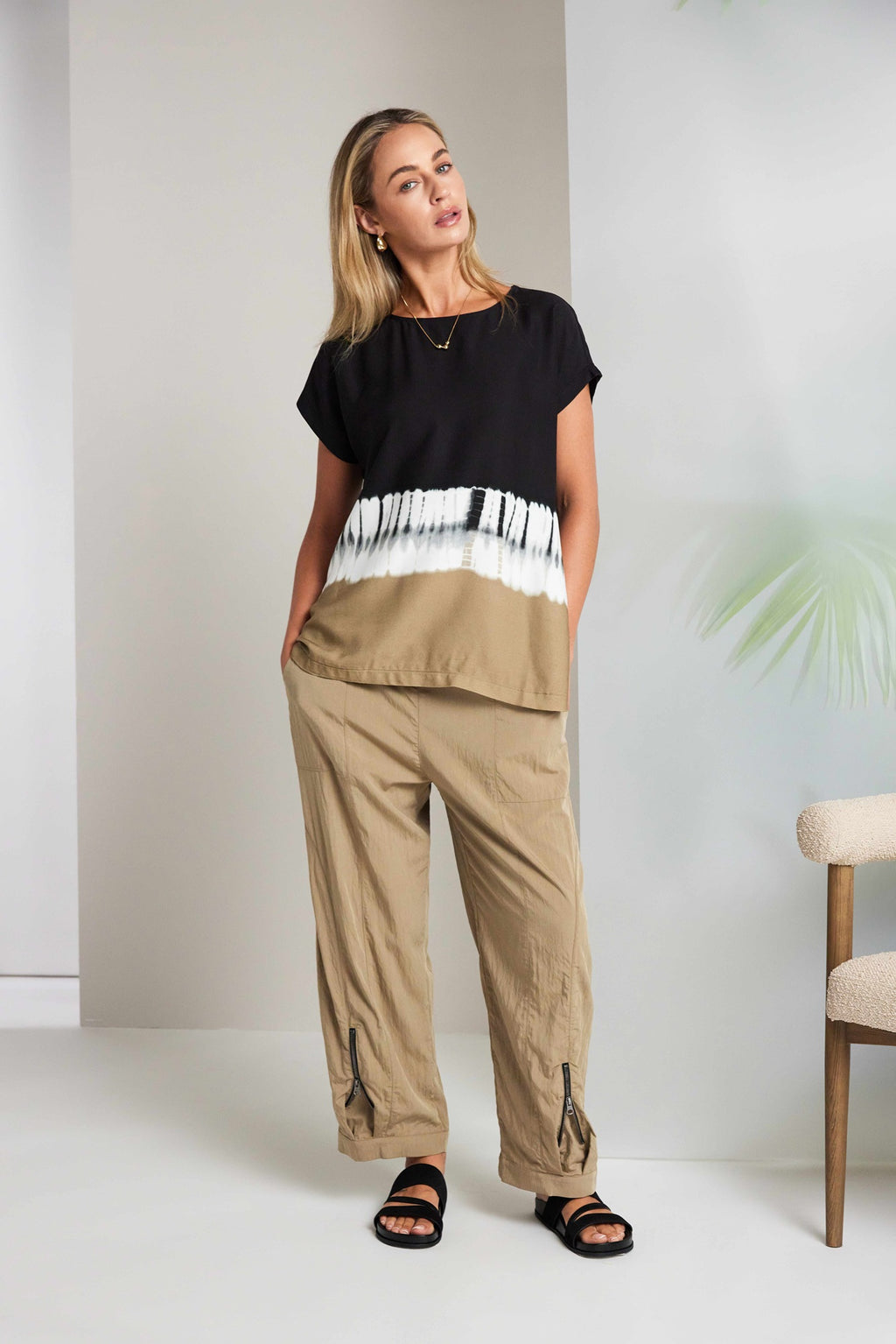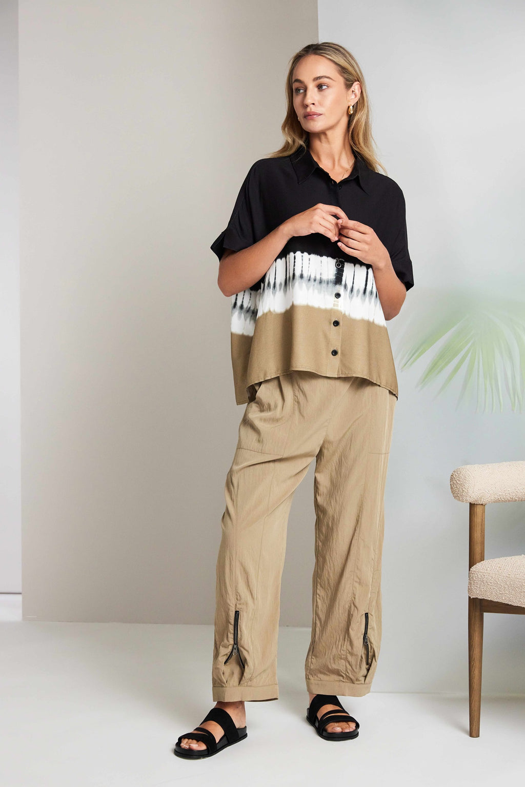 Zip Detail Pull Up Trouser - Tan