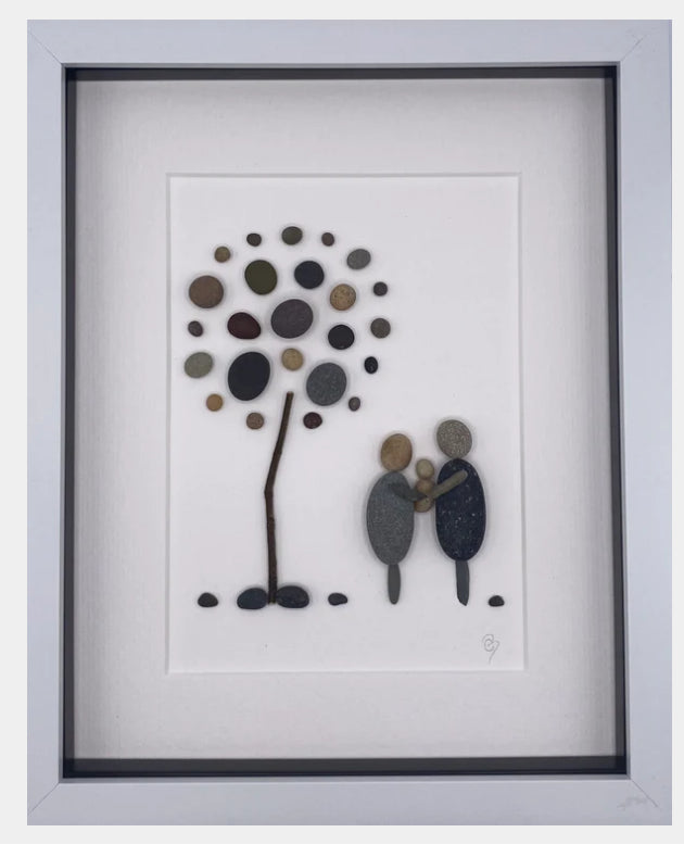 This piece is beautiful gift for a new arrival into a family. Showing both parents holding the new born.