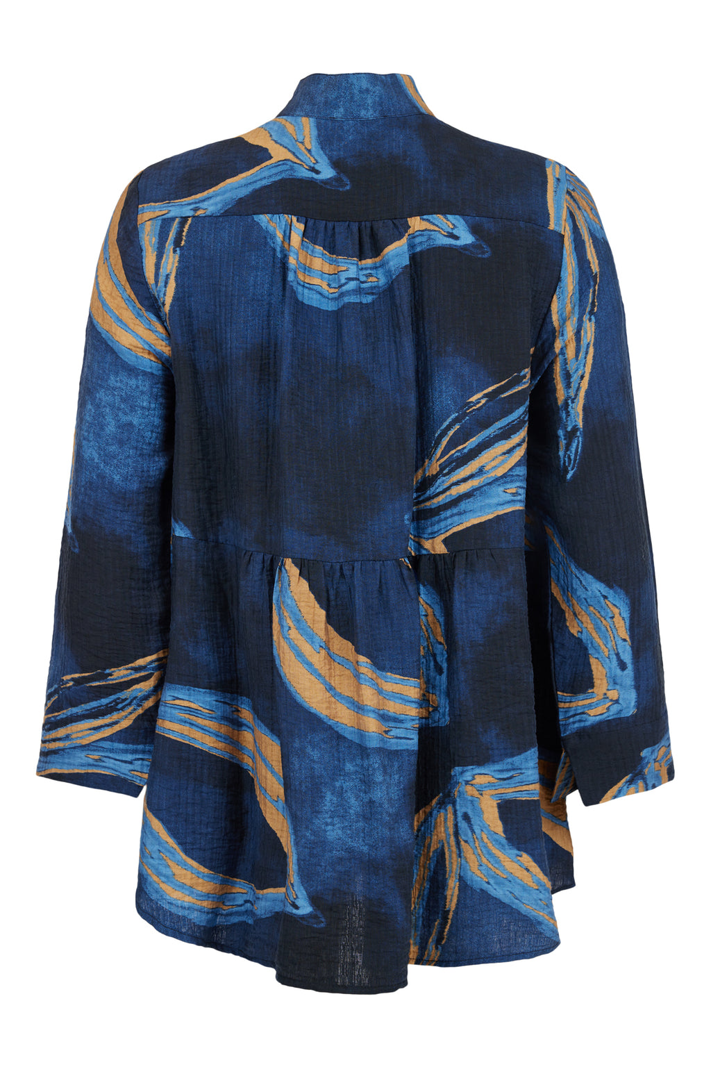 GRANDFATHER COLLAR SHIRT - Navy, beige