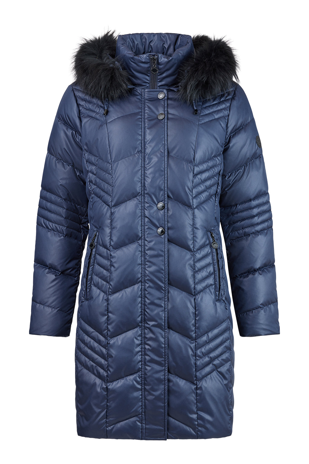 - Faux fur hood trim.