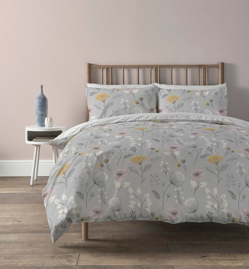 Update your bedroom interior with the Olia duvet cover set from Copenhagen Home. The engaging floral design is drawn in a range of on-trend ochre, grey and blush on a silver background. The set is produced with modern-day living in mind - the polycotton fabric is easy to care for and the overall design works well in a range of different bedroom colours and styles.