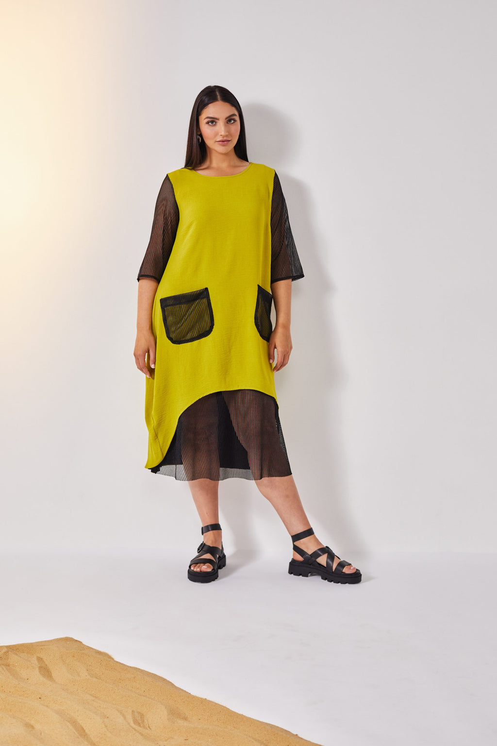 Contrast Mesh Dress - Lime