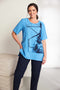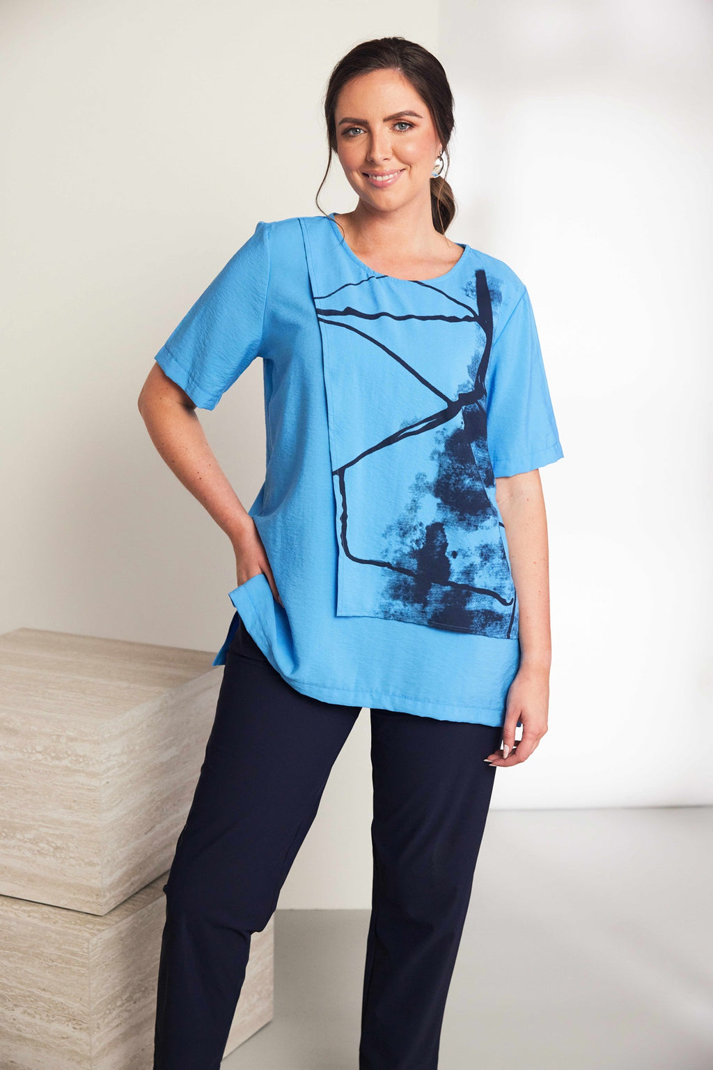 Front Wrapover Placement Print Top - Vivid Blue