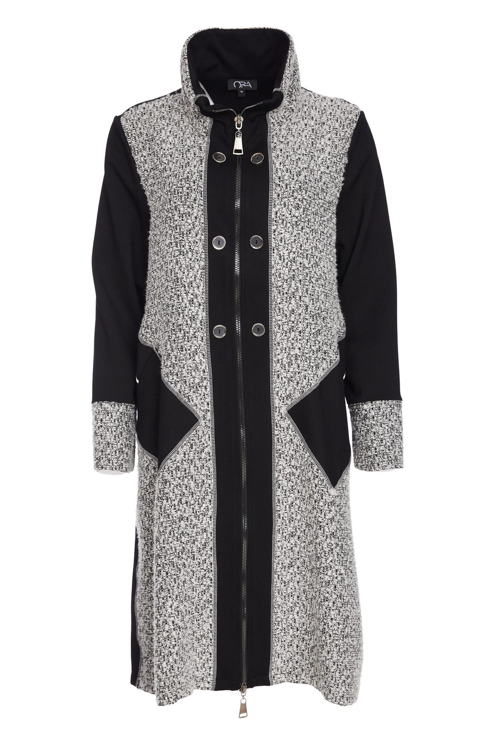 High Neck Wool Mix Coat - Black/white