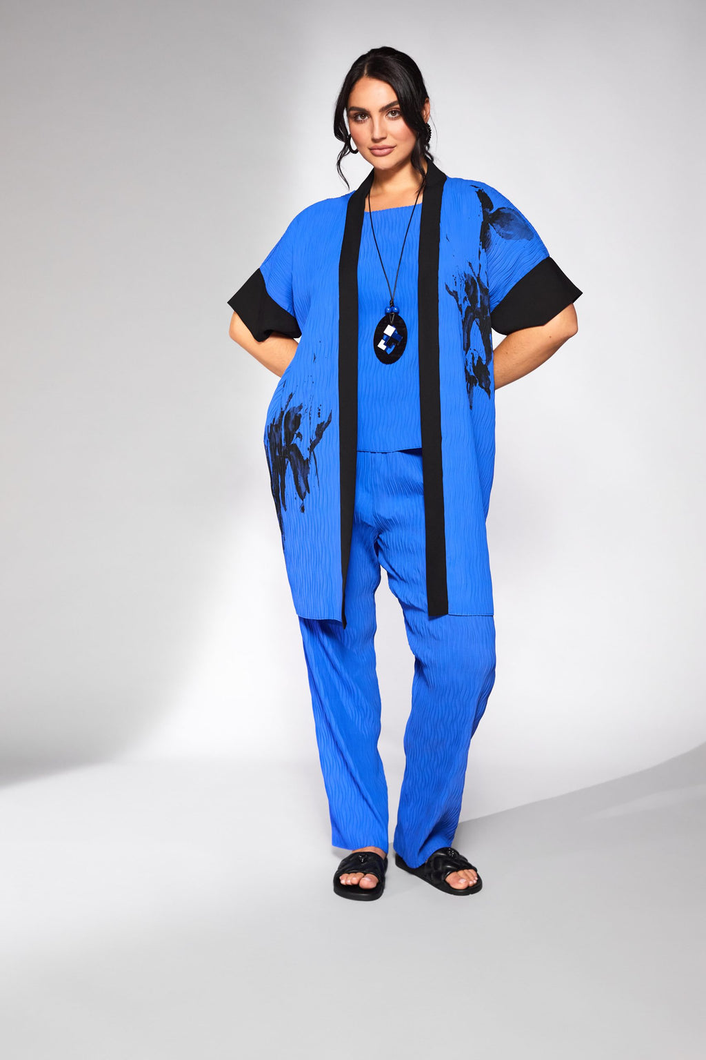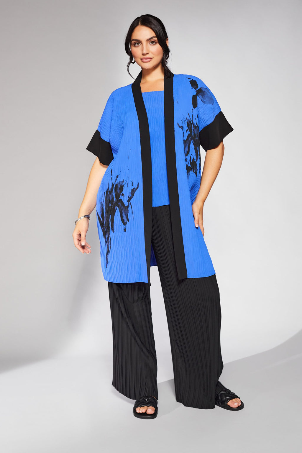 Side Print Pleated Wave Jacket - Cobalt/black