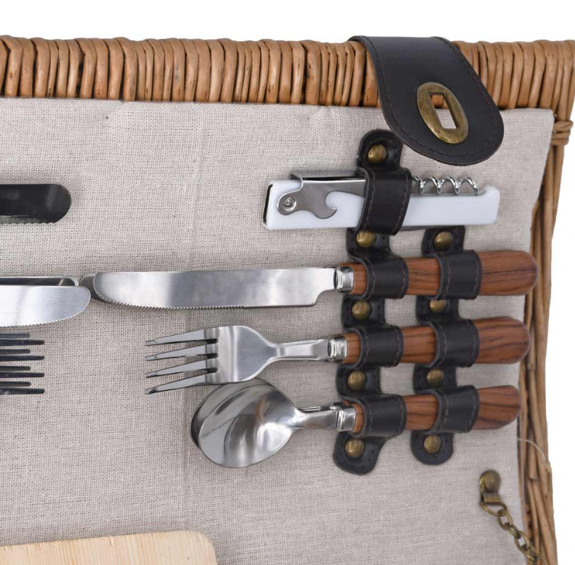 The Gisors picnic basket in honey-colored wicker composed of a linen inner fabric, is the perfect picnic basket for 4 people. Its rounded lid gives it an original look. Fully equipped, the basket is easily transportable with a long shoulder strap that is easily worn on the shoulder.