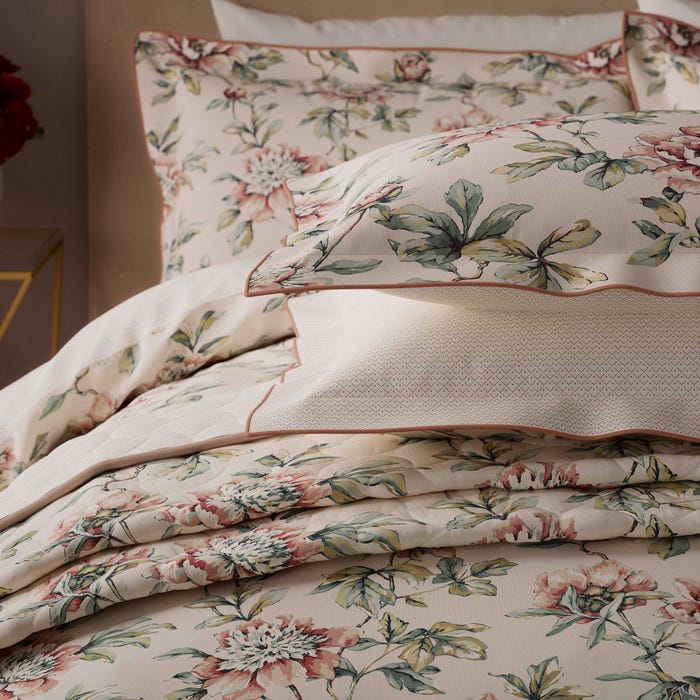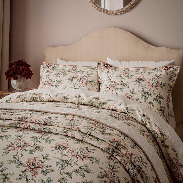 Inspired by Charlotte Horne Spiers' celebrated watercolour housed in the V&A Museum, this Peony Blossom design honours the legacy of a remarkable artist. Spiers' distinguished career spanned pottery painting at Mintons and independent commissions, where she developed a distinctive eye for capturing nature's intricate details. Her botanical expertise translates seamlessly into this refined pattern, which preserves the delicate nuance and sophisticated artistry of her original work. A timeless addition to any interior, this duvet cover set celebrates the enduring influence of early twentieth-century design and craftsmanship.