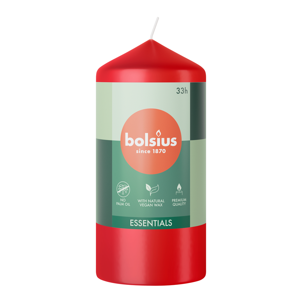 Check out the revamped Essentials collection! The Bolsius smooth pillar candle in the colour Delicate Red is 12 cm tall, with a burn time of 33 hours. Crafted with passion for people and the planet, using natural vegan wax and palm oil free. The collection includes elegant candles in a range of sizes and colours, which can be effortlessly combined with each other. A valuable addition for every interior!