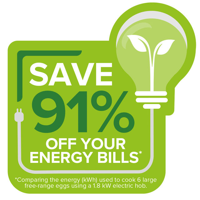 - Save 91% off energy bills using this egg cooker when comparing the energy used to cook 6 large free-range eggs using a 1.8 kW electric hob.