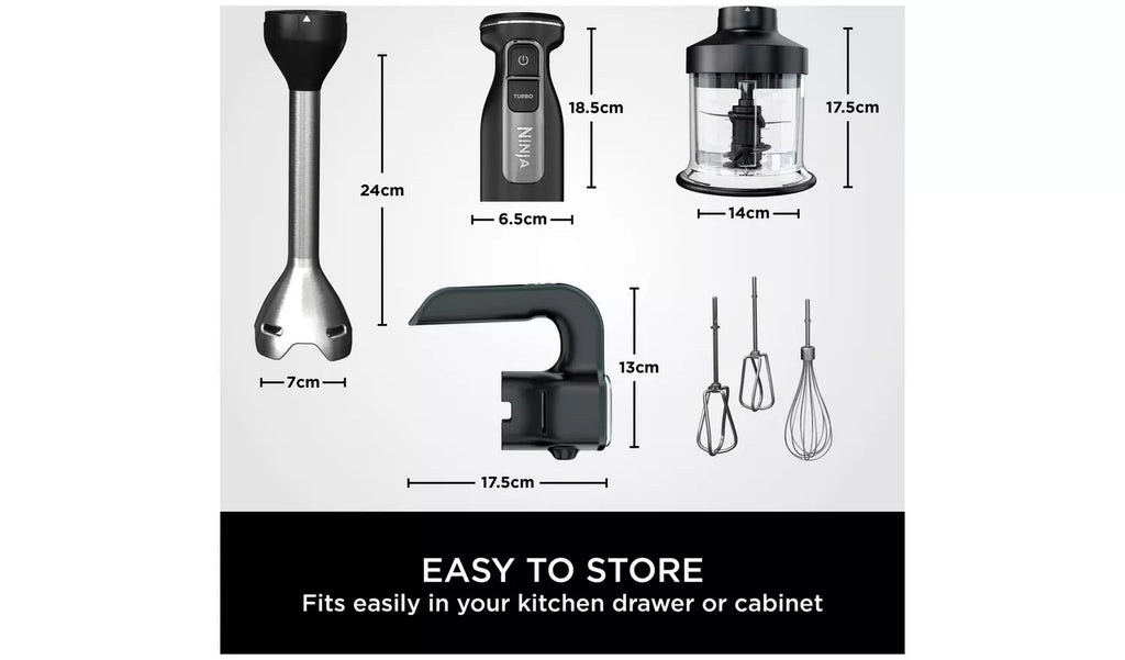 Easily tackle all your essential food prep tasks with 3 interchangeable handheld appliances: