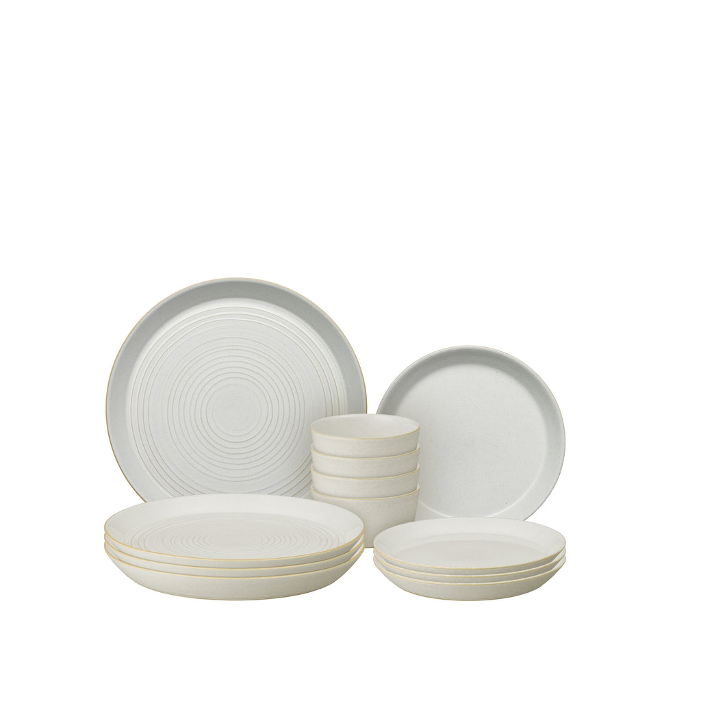 This tableware set includes 4 x Dinner Plates, 4 x Small Plates, 4 x Straight Bowls