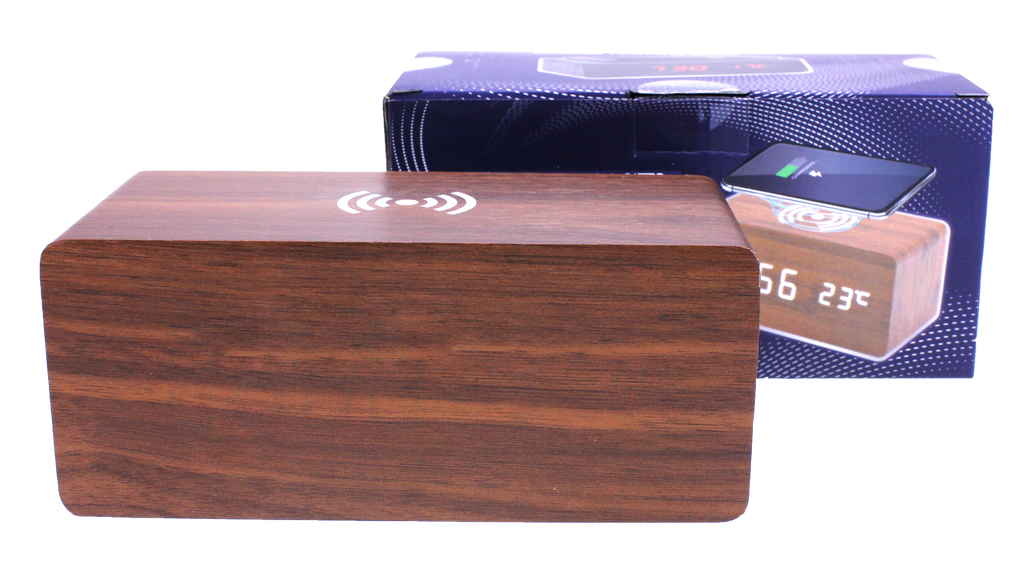 QI Wireless Charging Station Alarm Clock Walnu