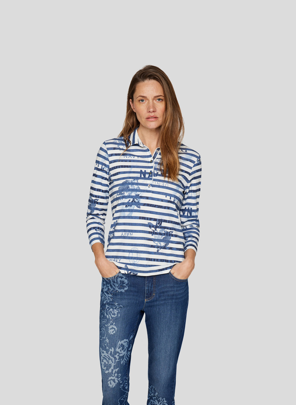 Denim Love Striped Polo Shirt - Dark Jeans
