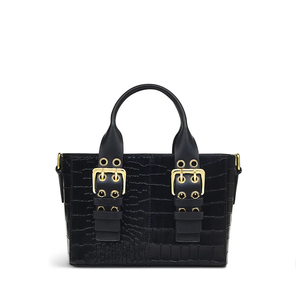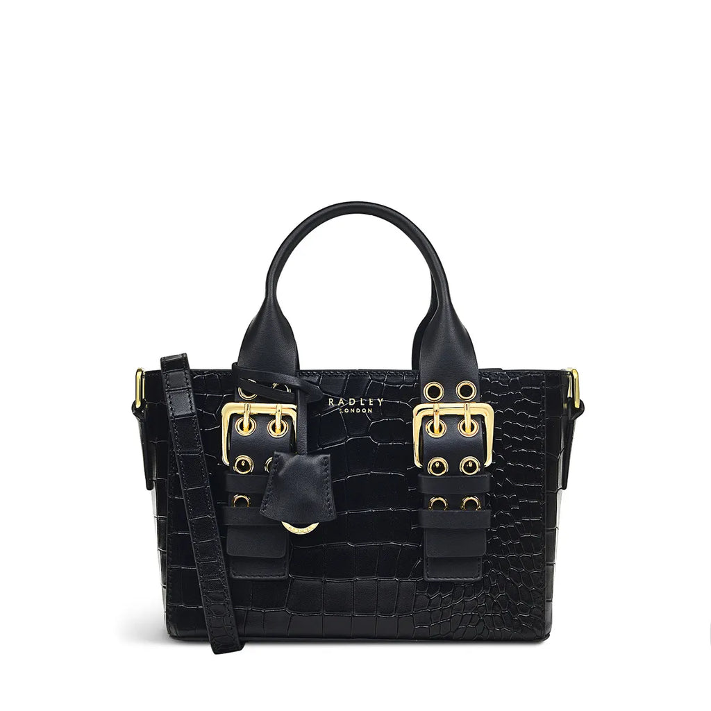 Curzon Street Faux Croc Ziptop Crossbody Bag - Black