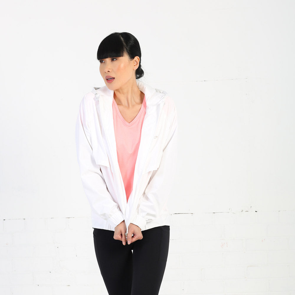 - Hood with drawstring.