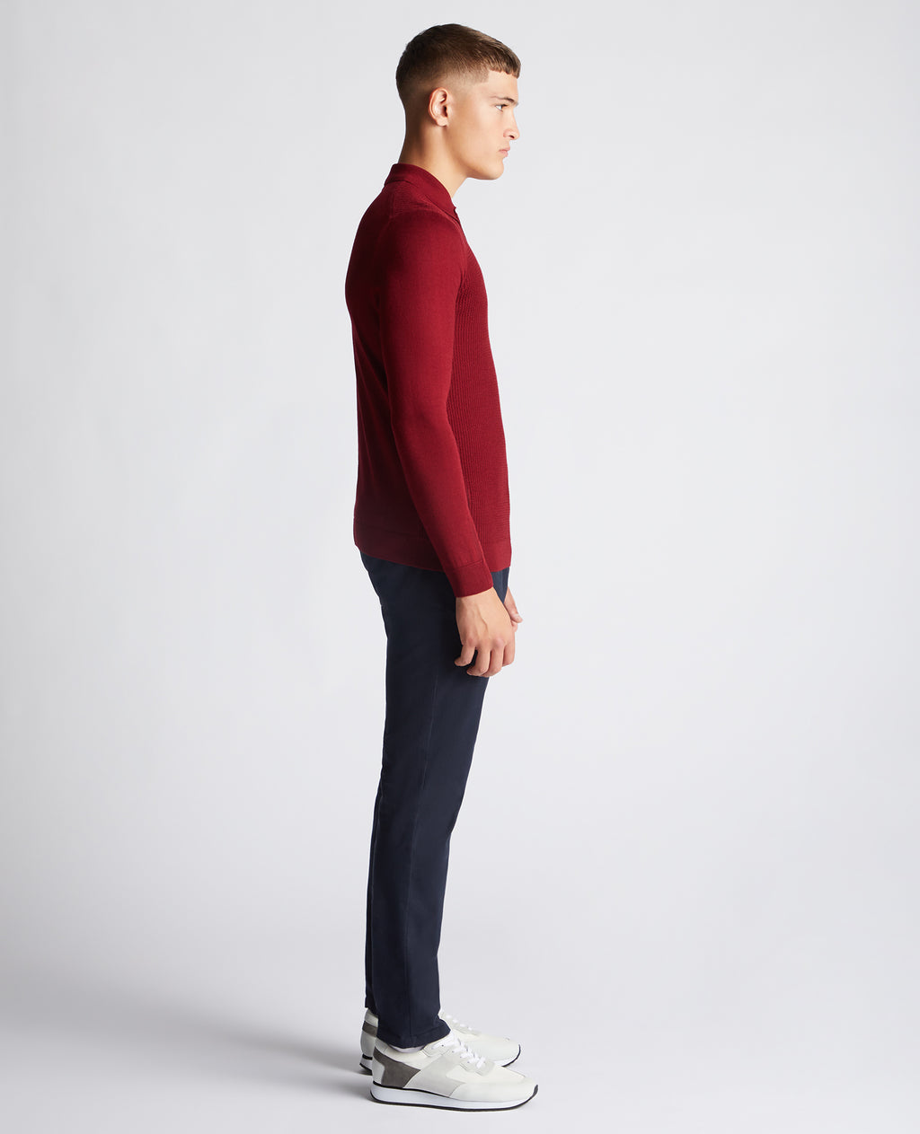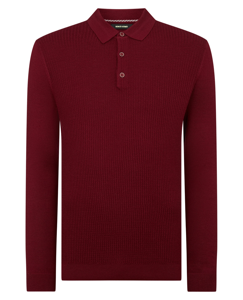 Long Sleeve Knitted Polo - Maroon