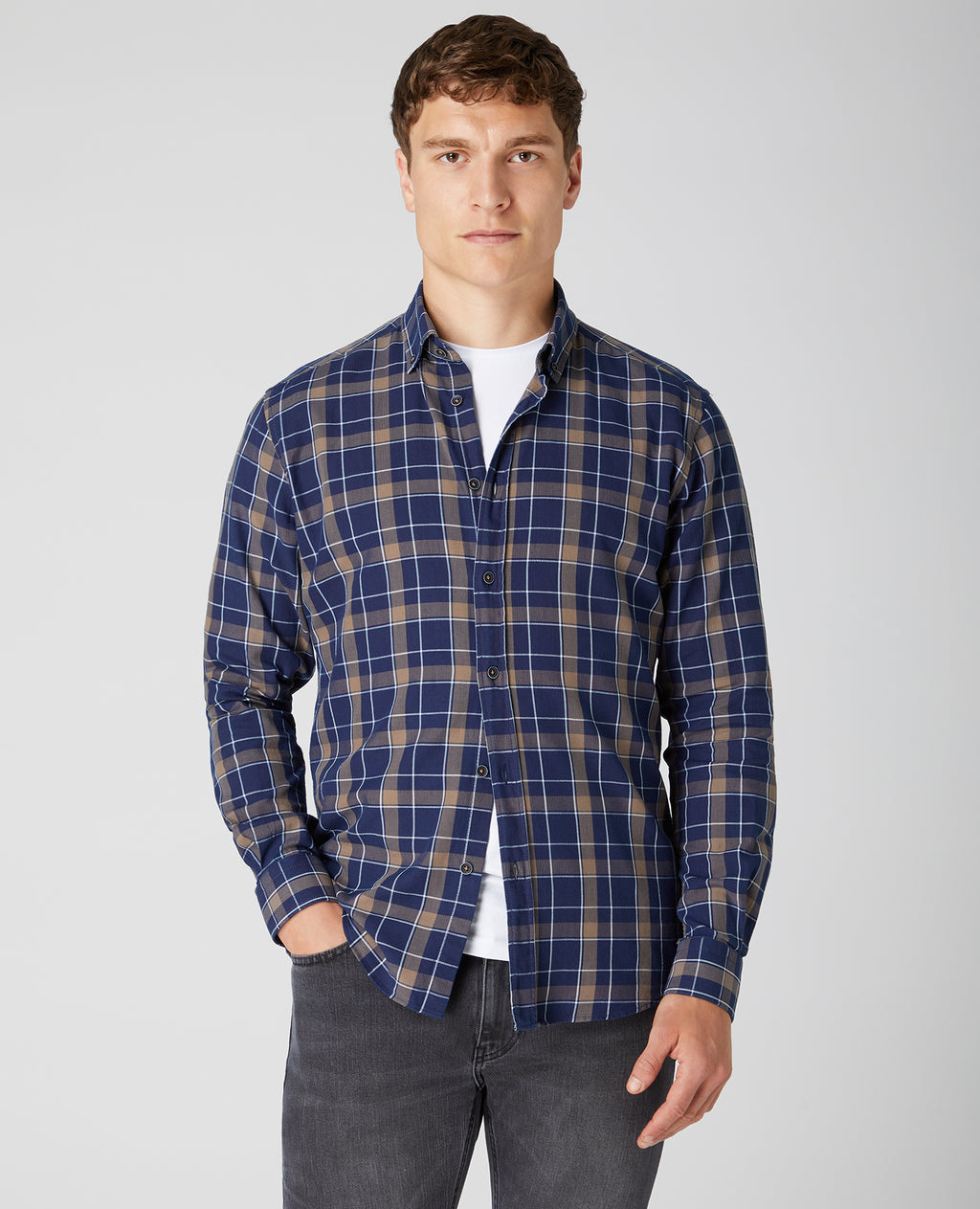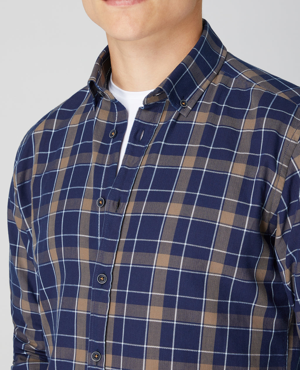 - Button down collar.