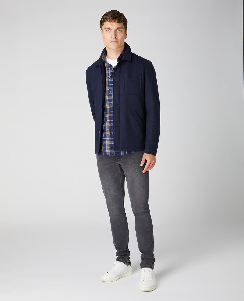 - Full central button fastening.