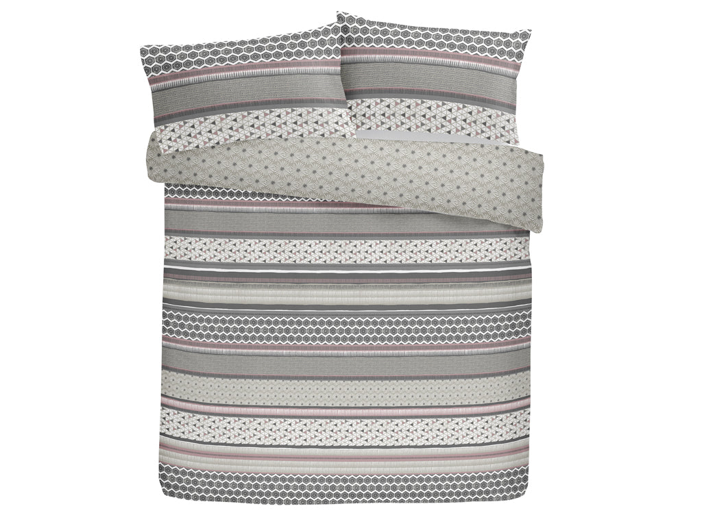 A strong, confident design from Fusion, the Retrace Stripe duvet cover set features a stunning geometric pattern in modern, on-trend blush and grey.