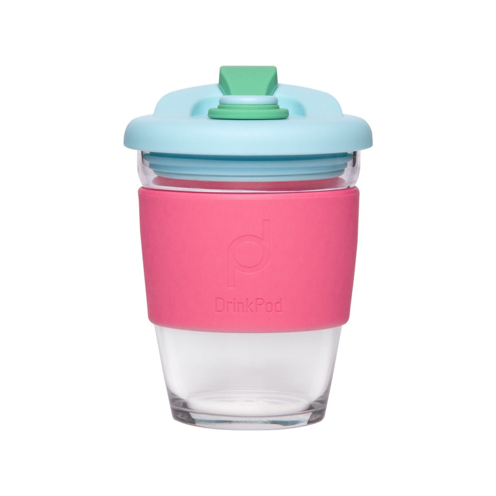 REUSEABLE COFFEE CUP, 340ML, GLASS & SILICONE, PINK