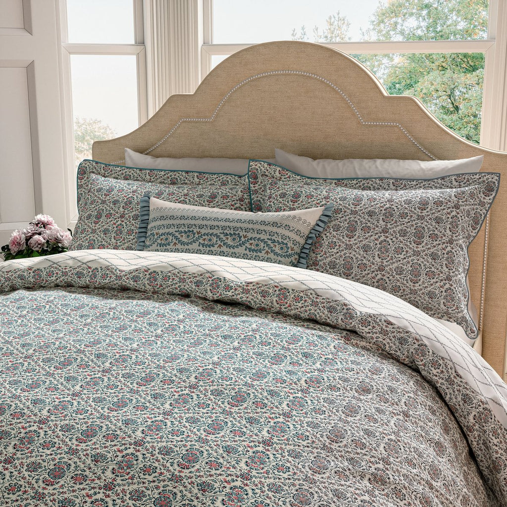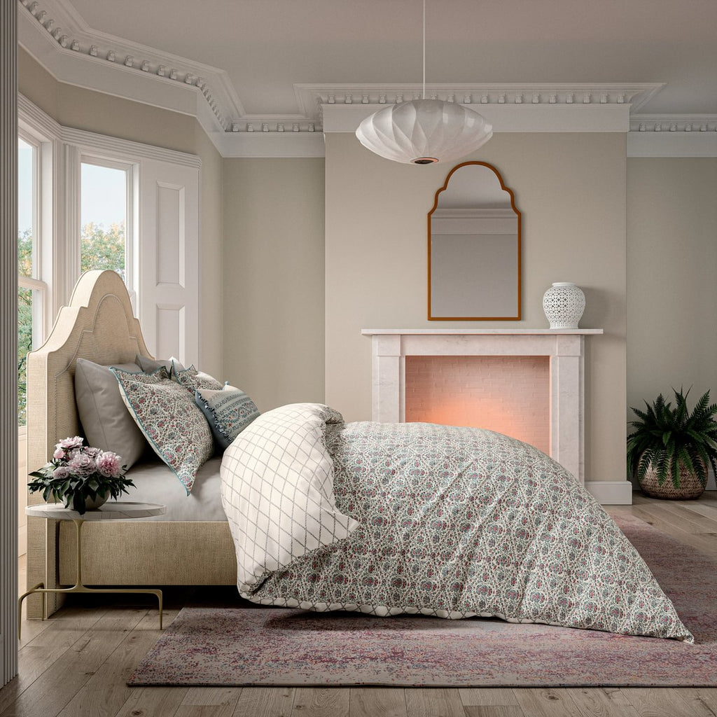 Drawing inspiration from 19th-century northern Indian textiles, this duvet cover set showcases a lattice pattern reflecting the masterful craftsmanship of printed cottons in the V&A collection. Combining floral and geometric motifs, it embodies the refined artistry of traditional block-printing methods. Elevate your bedroom with a seamless blend of classic elegance and expert design.