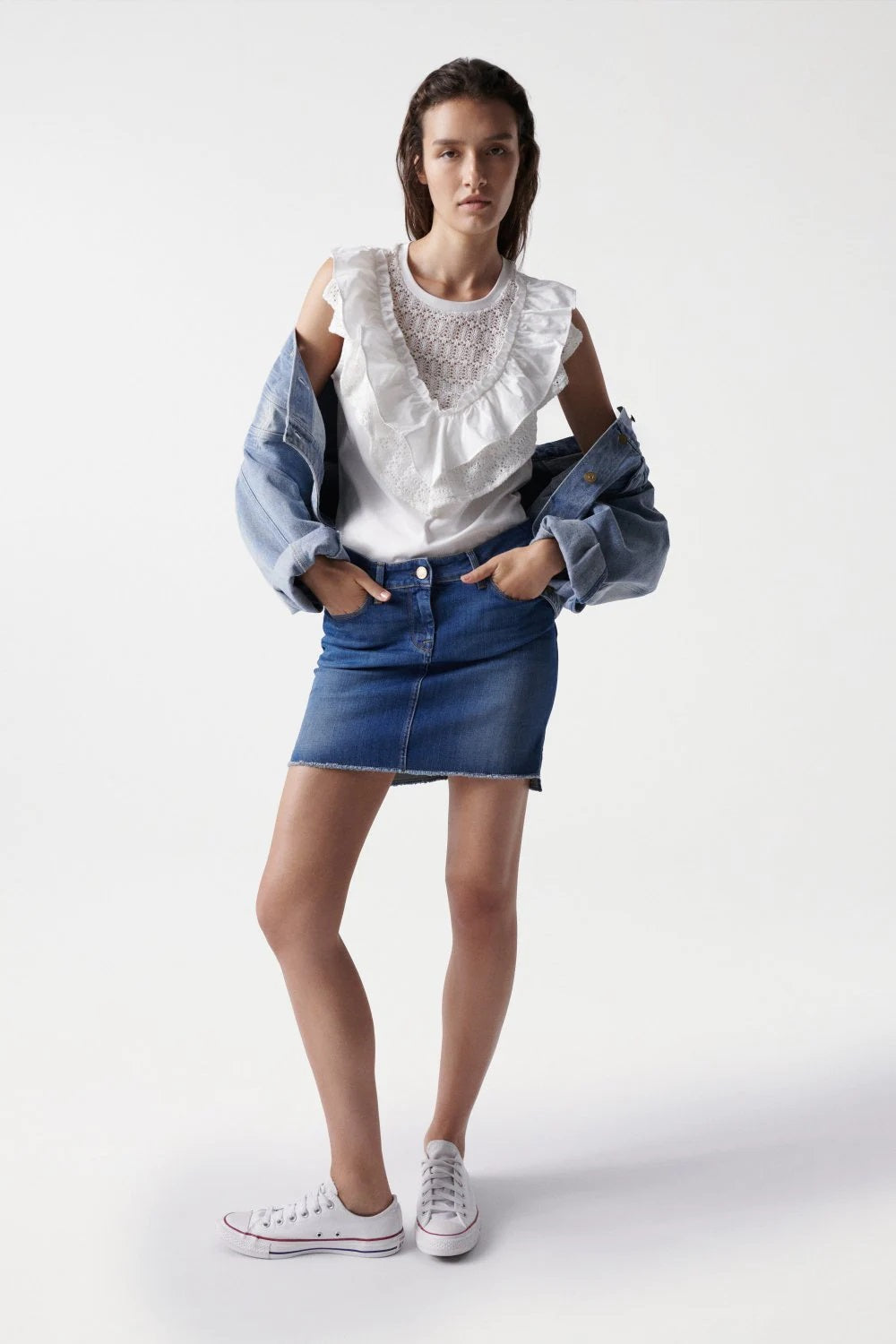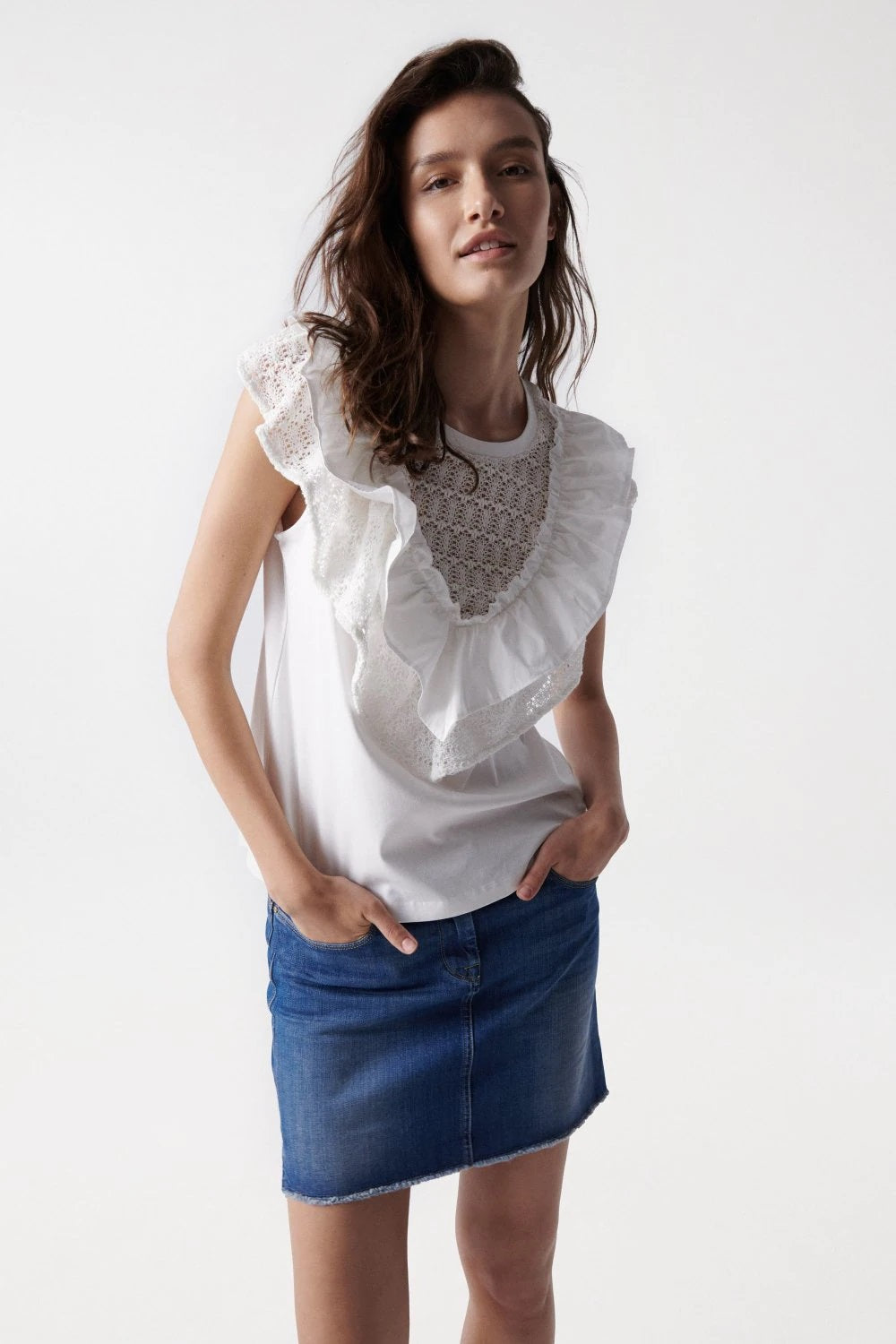 - Broderie anglaise detailing.
