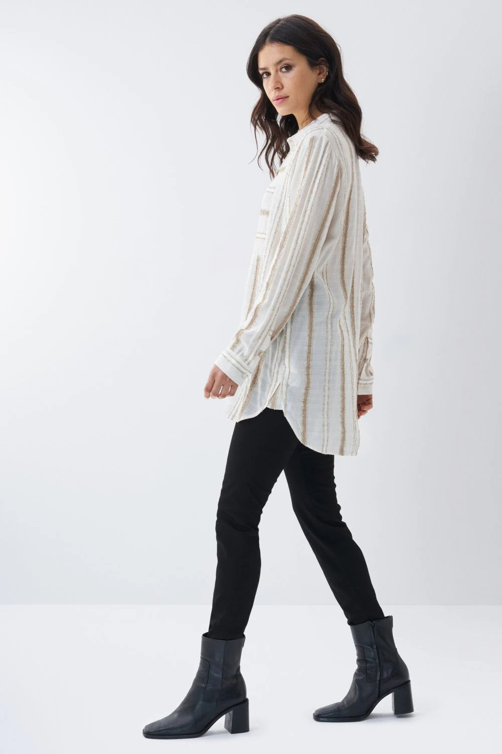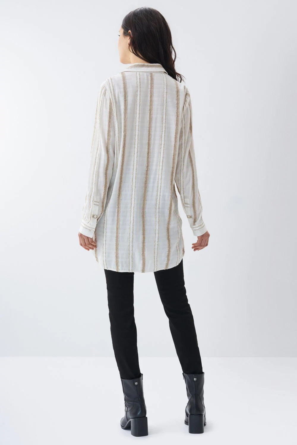 - Dipped hem at back.