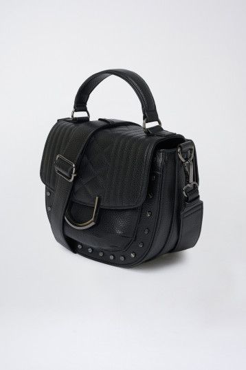 - Quilting and metal ring details.