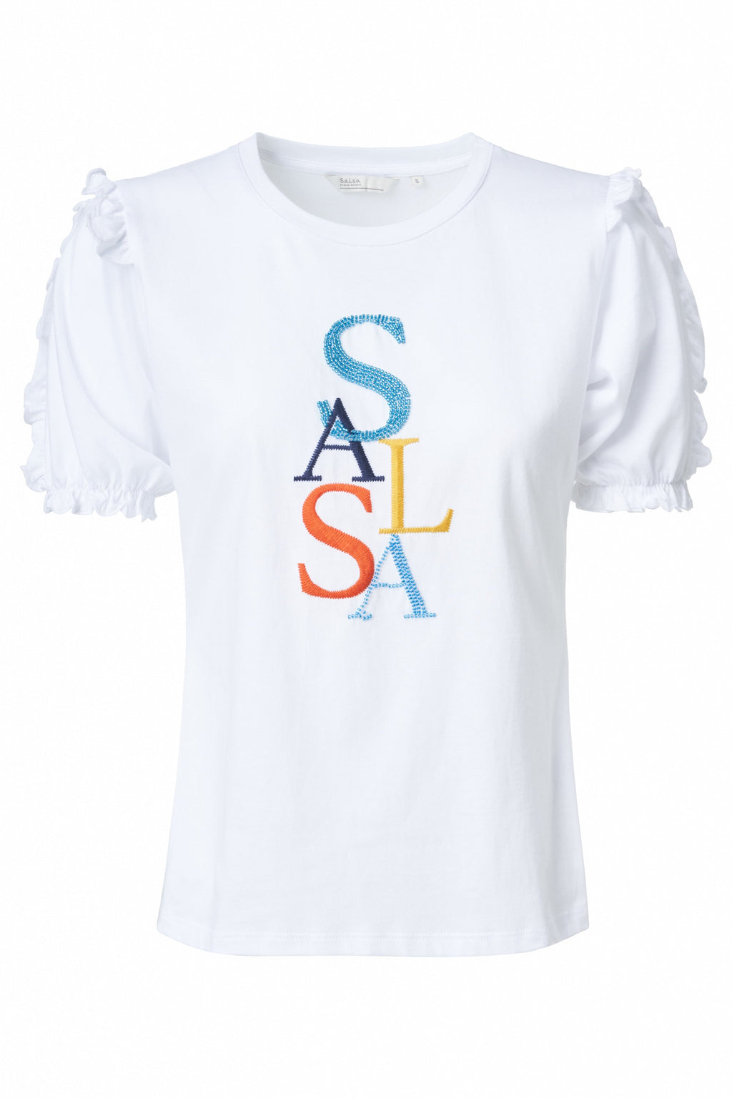 • Short sleeve with ruffle trim.
