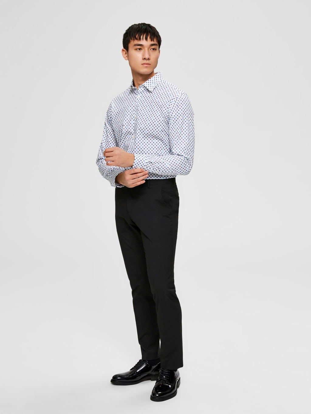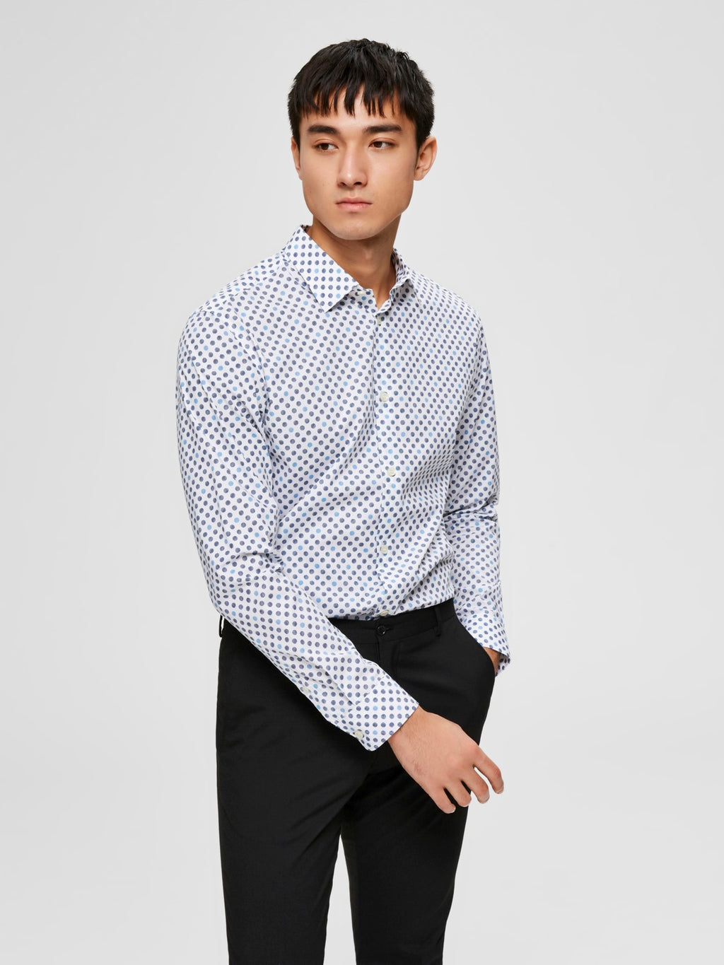 - Classic pointed collar.