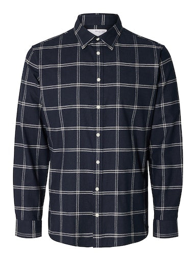Owen Flannel Long Sleeve Shirt - Dark Sapphire Simple