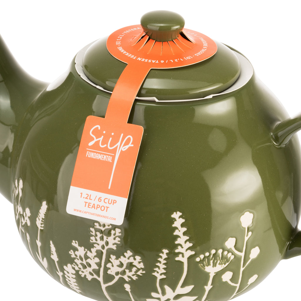 Wax Resist Floral 6 Cup Teapot - Green