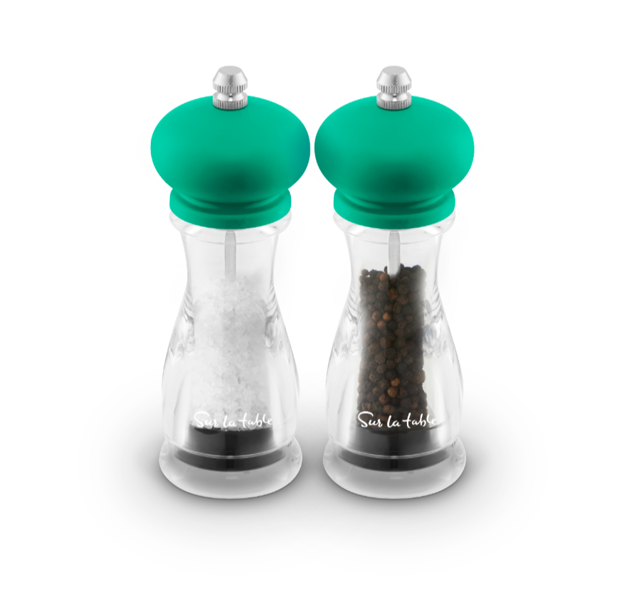 Looking to add extra flavour to your dishes? This set of two manual salt and pepper mills is what every cook needs. They feature multiple grinding options for both coarse and fine. The grinder is made from durable ceramic, meaning it effortlessly cuts through peppercorns and salt crystals for perfect seasoning. Sur La Table, over 50 years of cooking together.