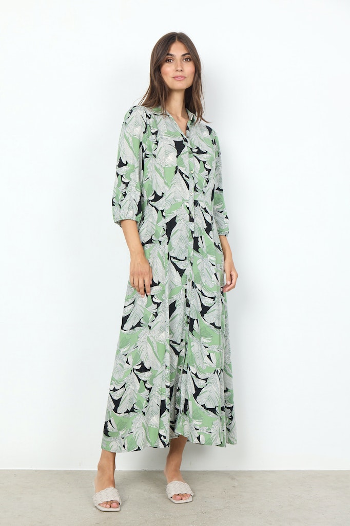 Dauphin 4 Split Neck Print Dress - Misty Combi