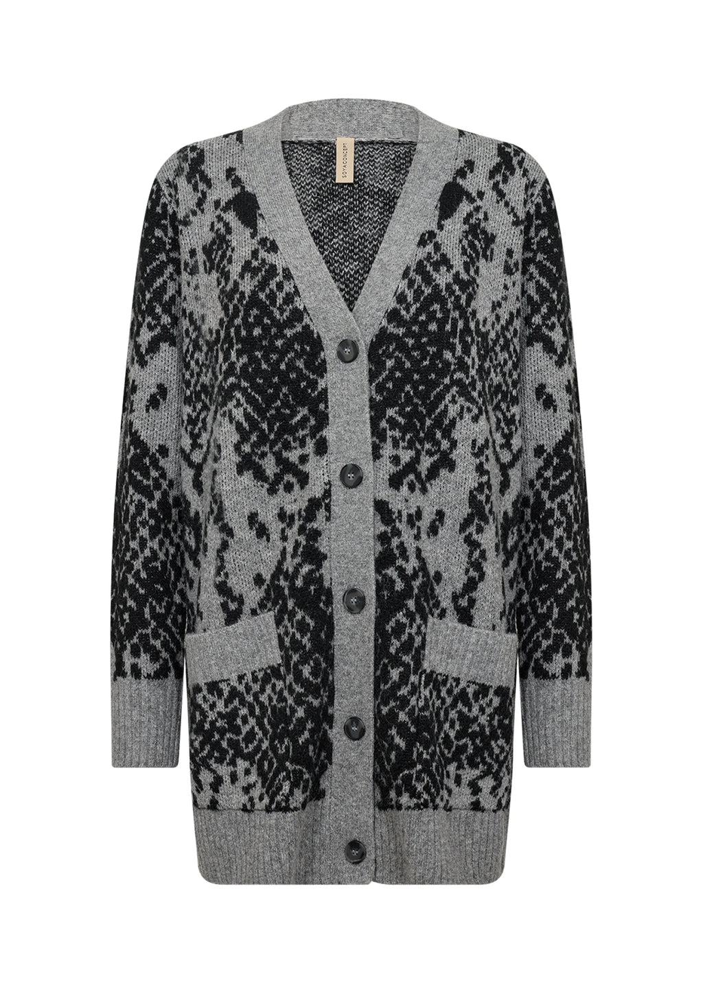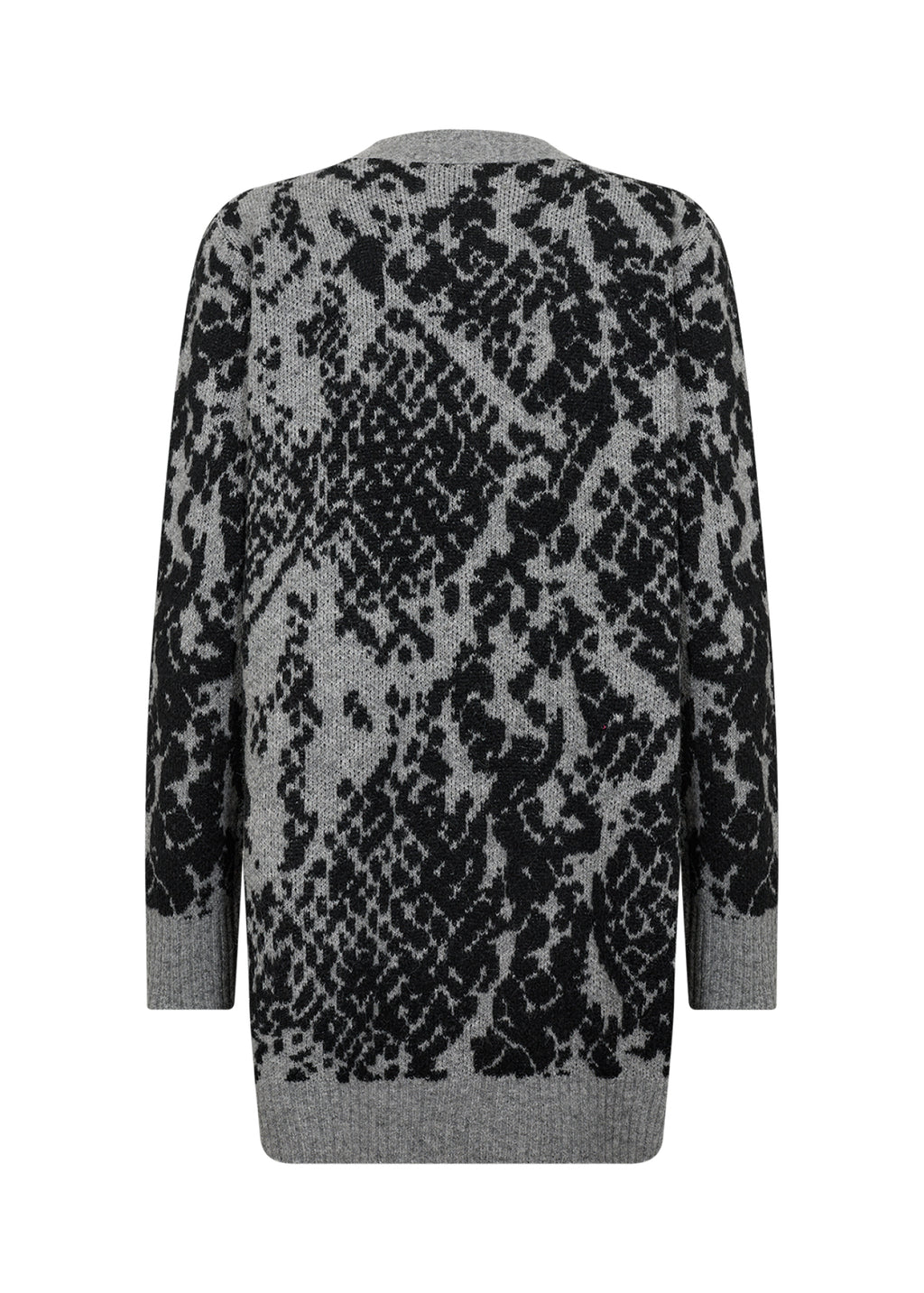 Vendi 3 Abstract Print Cardigan - Medium Grey Melange Combi