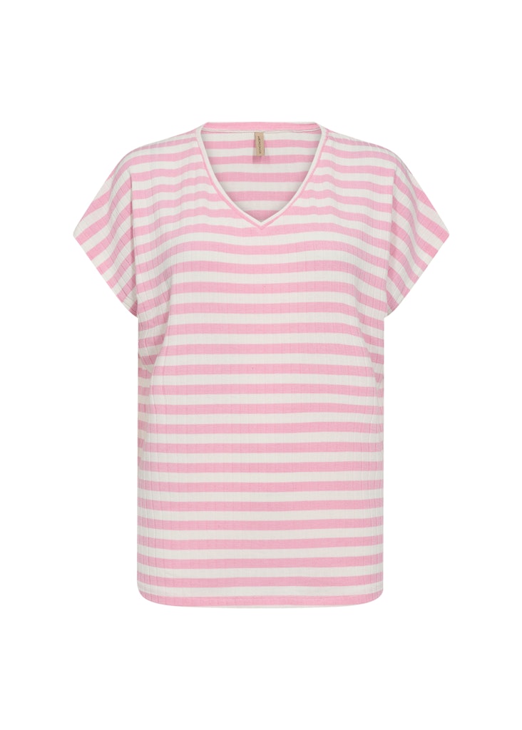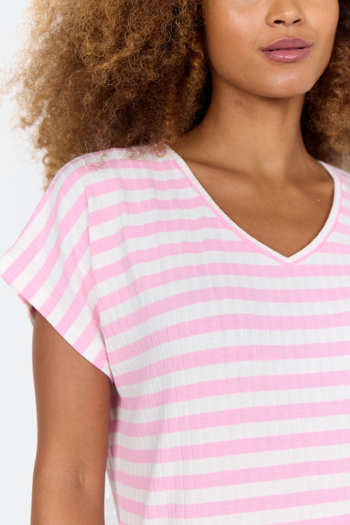Kaiza3 V Neck Stripe T-Shirt - Pink Combi