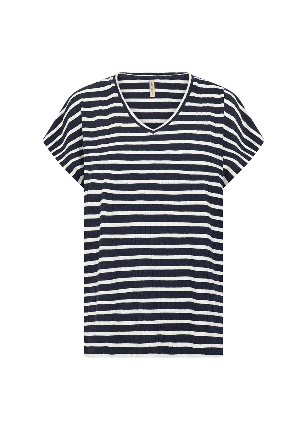 Kaiza3 V Neck Stripe T-Shirt - Navy Combi