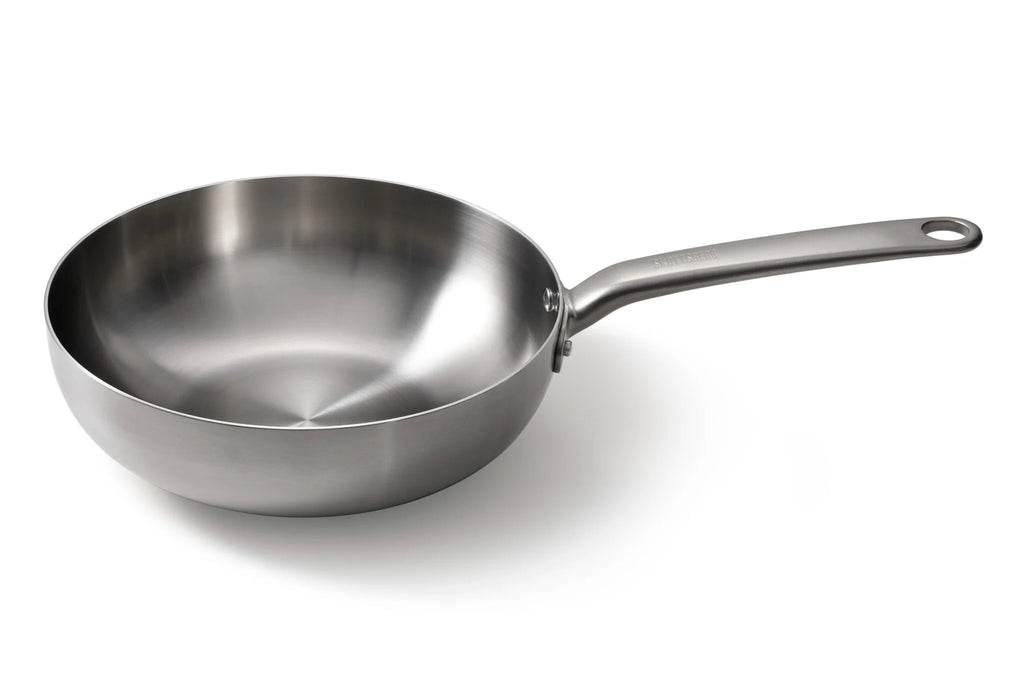 The Skottsberg Stainless Steel wok consists of three layers of metal, hence the name Tri-ply stainless steel. The layer on the outside is made of 18/0 stainless steel. This makes the pan very strong but also magnetic so it is suitable for induction. The intermediate layer of the pan is made of aluminium, an extremely heat-conducting metal, allowing the pan to heat up quickly and evenly. The third layer, on the inside of the pan, is made of high-quality 18/10 stainless steel.
