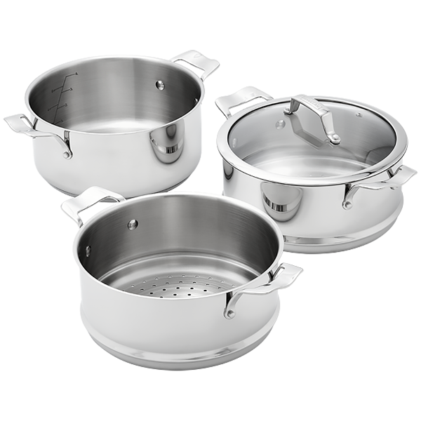 - Savour the nutrients in your food with gentle steam cooking. Craft dishes that are flavourful, softened and juicy in this versatile steamer set designed for a lifetime of performance.