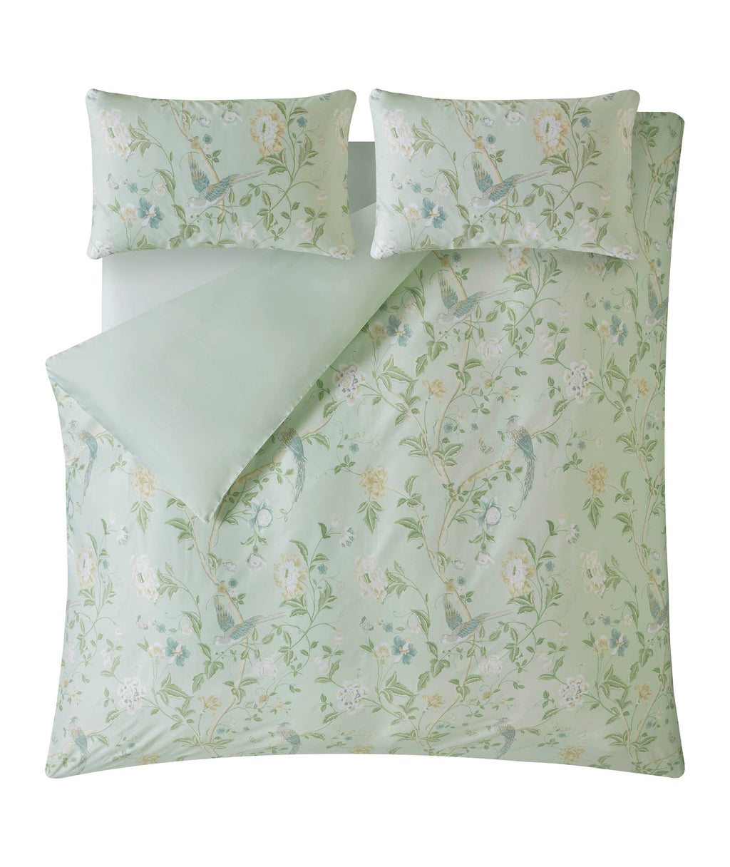 In a beautiful Midnight blue palette this archive print encompasses stylised blooms, butterflies and fabulous birds of paradise. Printed onto a luxurious 220 thread count cotton sateen this iconic print will bring a smart, decorative note to your room.