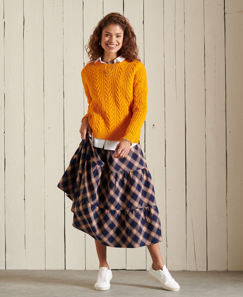Dropped Shoulder Cable Crew Jumper - Track Gold