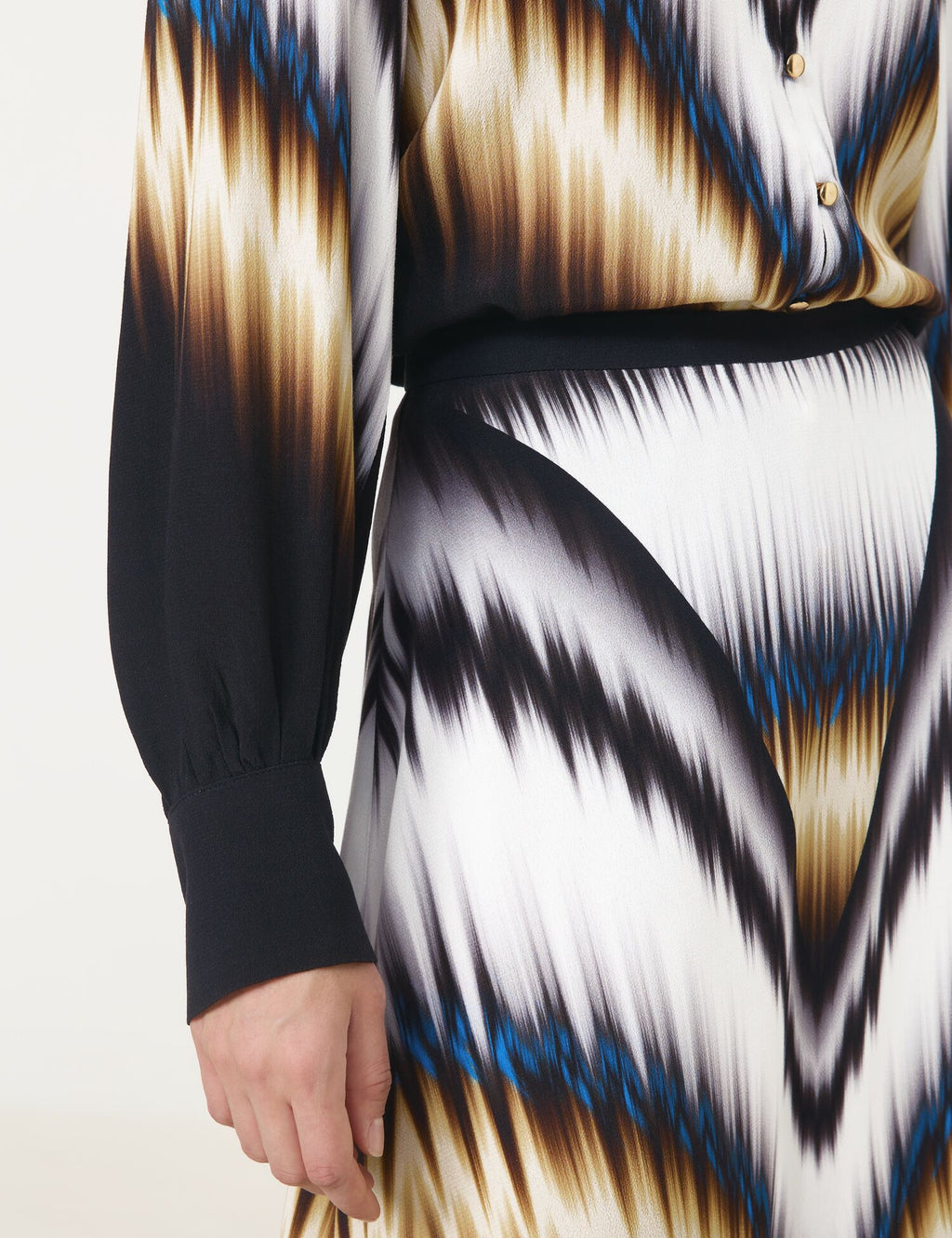 • Straight flowing skirt.