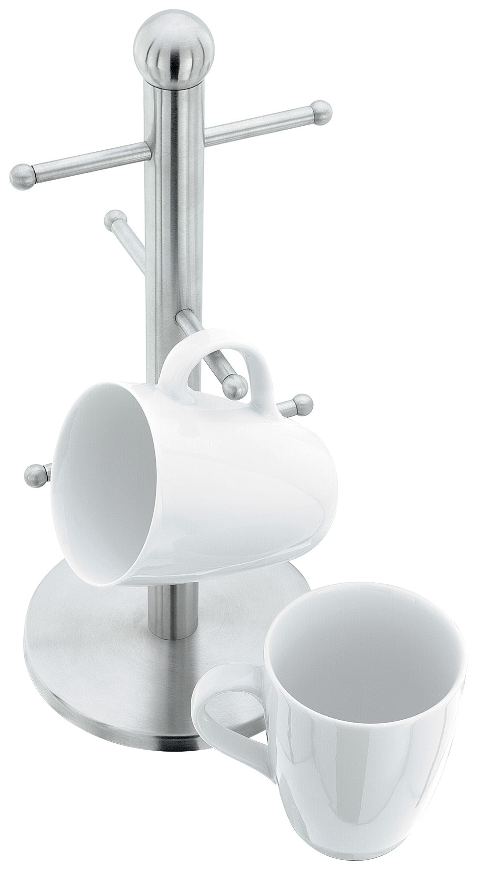- Stainless Steel Mug tree with hanging hooks for 6 mugs.