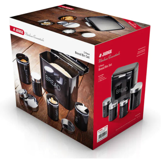 Contents: 1 bread bin, 1 x 2L cannister, 3 x 500ml cannister