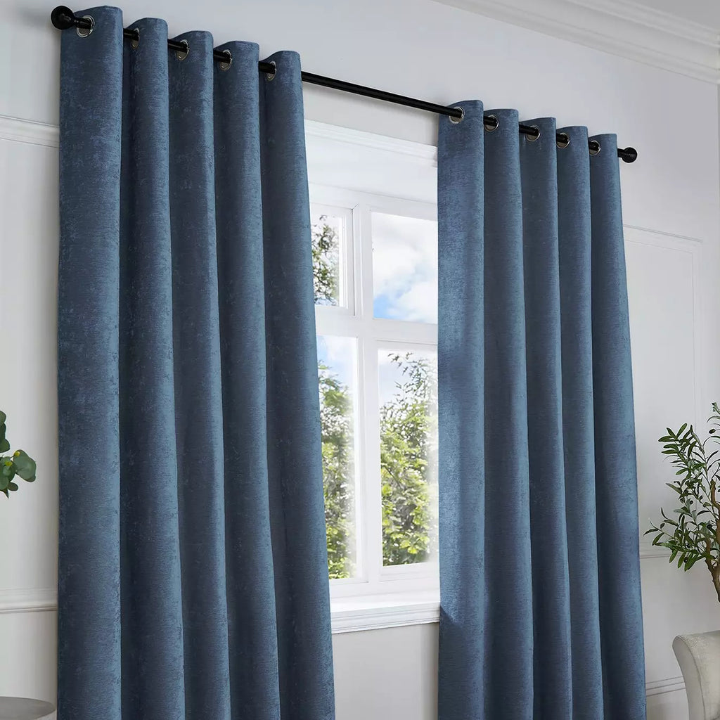 Textured Chenille Eyelet Readymade Curtain - Navy